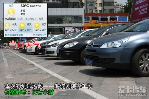 測試之前我們包下了公司附近海淀劇院的二十個(gè)停車位,為我們的測試場地提供了便利的條件,而且這個(gè)區(qū)域陽光沒有任何遮擋,可以肆無忌憚地照射在測試車型上。