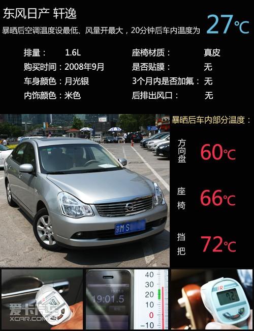 軒逸空調(diào)運行時發(fā)動機十分乖巧,車內(nèi)除了因測試需要調(diào)到最大的風機聲之外,其他噪音被控制得很小,對得起舒適宜家的公眾形象?照{(diào)20分鐘的賣力工作讓車內(nèi)下降了30多度,對于08年購買的軒逸來說表現(xiàn)可圈可點。