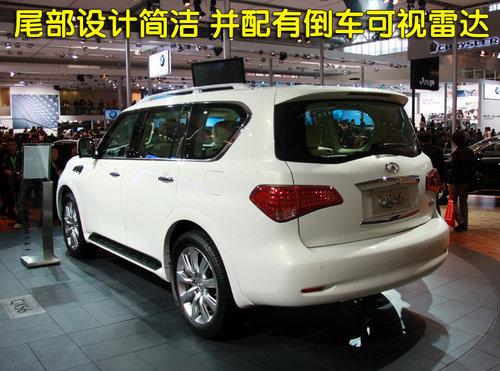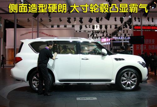 近年來SUV車型持續(xù)火爆,各廠商陸續(xù)推出新的車型以增加市場(chǎng)競爭力。同時(shí)性能強(qiáng)悍,寬大舒適的大型SUV,也得到了一些具有獨(dú)特品位喜歡運(yùn)動(dòng)且資金富裕消費(fèi)者的最愛,因此大型豪華SUV市場(chǎng)也受到了不少消費(fèi)者的關(guān)注。英菲尼迪是日系高端品牌中最具有藝術(shù)氣息的,今年在北京車展上就展出了全新一代的QX56,QX56作為一款7座豪華SUV車型,一經(jīng)推出就立刻受到了的中國消費(fèi)者的關(guān)注。近日我們從英菲尼迪4S店銷售人員處獲悉到,全新的英菲尼迪QX56將于今年9月份到店,預(yù)計(jì)售價(jià)160萬元左右。銷售人員還表示,目前各4S店均已開始接受預(yù)定,訂金10萬,第一批車主將于10月份提到現(xiàn)車。下面就讓我們回顧一下,在2010北京車展上見到的英菲尼迪QX56。