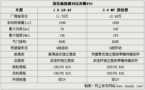 通過四個方面的比較可以看出,別克新凱越是圍繞著家用為主的定位打造,配置相對豐富,動力和懸架的部分也同樣是婉約風格。更加寬大的奔騰B70定位B級車,運動風格是它的主打,外觀更加商務的感覺可以迎合一部分商界精英的青睞。接近一萬兩千元的差價,最好的決定還需要您自己定奪。
