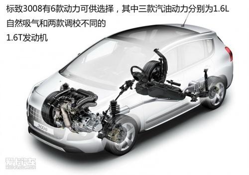 標(biāo)致3008有6款動(dòng)力可供選擇,包括三款柴油動(dòng)力和三款汽油動(dòng)力,首先來(lái)說(shuō)與國(guó)內(nèi)消費(fèi)者關(guān)系最密切的汽油發(fā)動(dòng)機(jī),包括一臺(tái)1.6升VTi發(fā)動(dòng)機(jī),最大功率118馬力,扭矩160Nm;另一臺(tái)1.6升THP渦輪增壓發(fā)動(dòng)機(jī)最大功率148馬力,扭矩374Nm,另一臺(tái)高功率的1.6升THP渦輪增壓發(fā)動(dòng)機(jī)最大功率154馬力,扭矩374Nm。