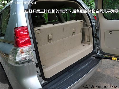 在打開第三排座椅的情況下,普拉多后備廂的儲(chǔ)物空間已經(jīng)近乎于零了,所以滿載7人之后,應(yīng)該趕快把第三排座椅收回去,不會(huì)?請(qǐng)看上圖。收起第三排座椅同樣是兩步,先摳起座椅旁邊的機(jī)關(guān),椅墊就可以自動(dòng)收回了,然后再摳起椅背上的開關(guān),放倒椅背就可以恢復(fù)如初了。