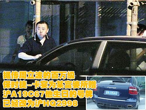 周立波目前的座駕是一輛價值百萬的藍(lán)色保時捷新卡宴SUV,上海的觀眾以及媒體早已經(jīng)對這輛座駕非常熟悉。但是在這輛座駕的背后還有著一段故事。其前妻張潔曾經(jīng)對媒體表示,該車系溫州富婆所贈,因此自從“博客門”后,周立波就再也沒有開卡宴到戲院演出。