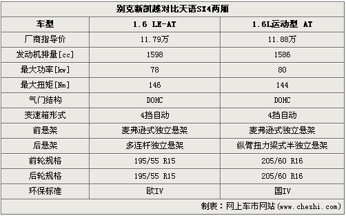 現(xiàn)款別克新凱越縮小了產(chǎn)品線,1.8L發(fā)動(dòng)機(jī)被取消,1.6L發(fā)動(dòng)機(jī)的動(dòng)力對(duì)于平時(shí)的城市使用還是足夠的。鈴木天語SX4兩廂車型同意搭載1.6L發(fā)動(dòng)機(jī),最大輸出功率比新凱越多2千瓦,最大輸出扭矩則是少了2N.m。兩款車型都搭載有4速自動(dòng)變速箱,比較安逸的動(dòng)力組合。懸架的部分,兩款車型前懸架都是采用麥迪遜獨(dú)立式,兩者的區(qū)別在于后懸架。新凱越采用多連桿獨(dú)立式后懸架,偏向舒適的調(diào)教給予車身很緩和的過完感受。SX4兩廂采用縱臂扭力梁式半獨(dú)立后懸架,相對(duì)之下則是遜色了一些。