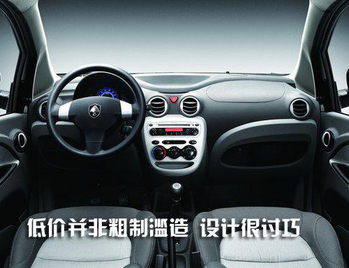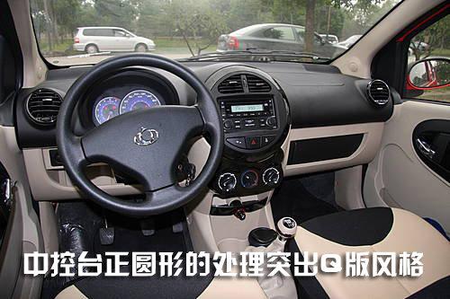 奔奔mini的中控臺設計與前兩款車型有所不同,與前者相比面積利用率更大,各部件的擺放位置也更合理耐看。中控臺面板為一微微凸出平面,輔以銀色涂裝,具有上佳的人機工程學設計;空調出風口是四個可完全關閉的原型狀;副駕駛前方手套箱由抽屜式變成開放式;門壁板手枕加寬,更便于使用。