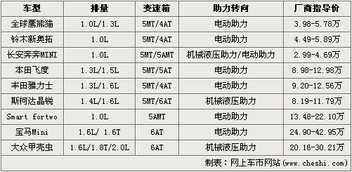 能吸引注意力,外觀之最直觀的一點,也是九款車型最大的一個共同優(yōu)勢所在。若要說它們“虛有其表”,也不能這么簡單的妄作斷言。擁有足夠的動力是小車能在都市里穿梭的前提,很顯然沒有低于1.0L的排量基本上可以保證這一點。轉向助力可以是操控更輕巧,三個階層的價位可以滿足不同經濟實力人群的購買需要。美麗的女孩,開一輛可愛的小車,游蕩在高樓林立中,好不愜意。