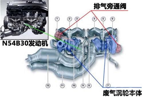 寶馬N54發(fā)動機的廢氣渦輪系統(tǒng)