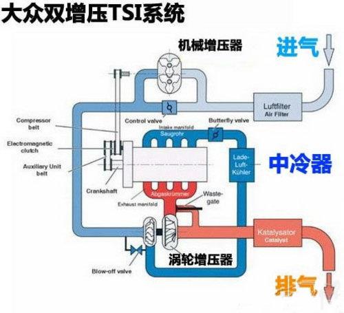 大眾TSI的含義:即Turbo-charging(渦輪增壓)、Super-charging(機械增壓)和Injection(燃油直噴)三個關(guān)鍵特色的首字母縮寫。也就是說,原汁原味的TSI,應(yīng)當是具備三大技術(shù)的——渦輪與機械的復(fù)合增壓,加上缸內(nèi)直噴技術(shù)。