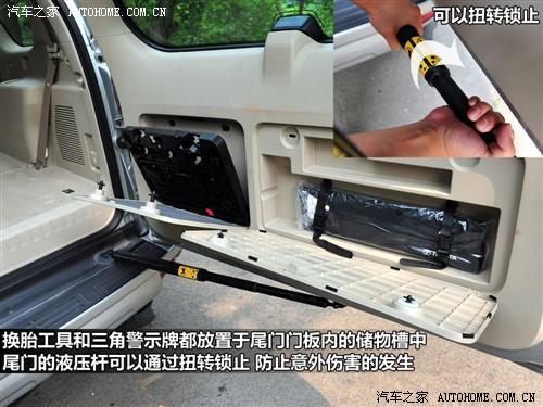 普拉多尾門的液壓桿可以通過扭轉(zhuǎn)進(jìn)行鎖止,這樣可以有效防止因?yàn)檎`關(guān)車門帶來的意外傷害,這個設(shè)計(jì)不需要太多成本但是非常體貼。而另一個小亮點(diǎn)是后備廂內(nèi)的一個220V交流電源,接些小電器非常方便。