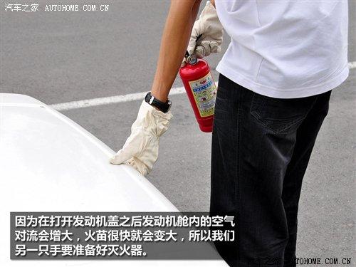 步驟三:發(fā)動機蓋打開后由于空氣對流增強,火苗會迅速變大,這時我們不能驚慌,拿著滅火器沖著發(fā)動機艙亂噴,在保證自己安全的情況下,盡可能地將滅火器的噴射口接近并對準著火點進行噴射,同時呼救其他車型的援助(因為車用的那種小罐滅火器的容量有限)。