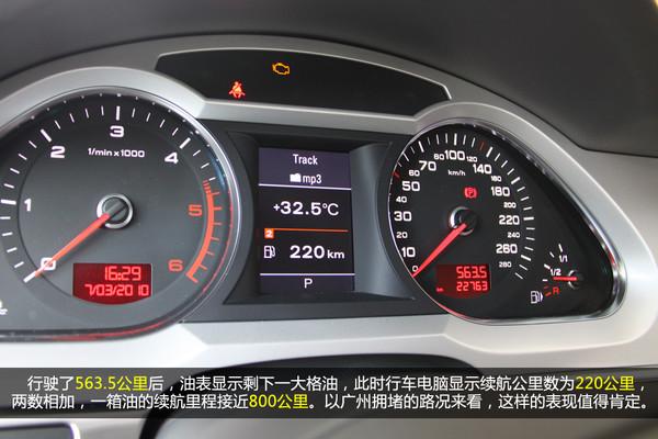 3天半下來總共行駛了563.5公里,油表顯示剩下一大格油,此時行車電腦顯示續(xù)航公里數(shù)為220公里,兩數(shù)相加,一箱油的續(xù)航里程接近800公里,雖然與理論數(shù)據(jù)有所出入,但以廣州這樣擁堵的路況來看,這樣的表現(xiàn)已值得肯定和認同。
