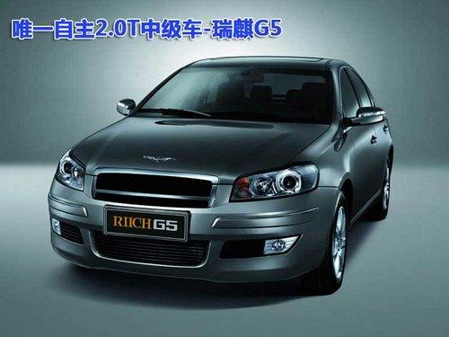 瑞麒G5配備自主研發(fā)的2.0T發(fā)動機(jī),最大功率輸出125kw,235Nm的峰值扭矩在1900rpm即可輸出,與其相匹配的是6速手動(6MT)和5速自動(5AT)兩種變速箱,不過目前只有6速手動擋在售。