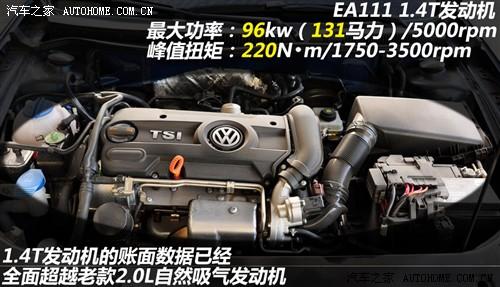1.4T這套動力總成在高爾夫6、速騰、明銳等車型上都已出現,發(fā)動機最大功率96kw(131馬力)/5000rpm,峰值扭矩220N·m/1750-3500rpm,賬面成績已經全面超越老款2.0L發(fā)動機。同時干式七速雙離合變速箱在加速性能、日常駕駛平順性、燃油經濟性方面也直接秒殺原來的5速手動、6速自動變速箱。當然進步往往是需要代價的,比如后期的保養(yǎng)、維修費用要高出原先的組合。