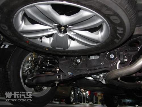 帝豪EX7的前懸掛為麥弗遜式,后懸架為雙叉桿獨(dú)立式,這樣的設(shè)計(jì)與RAV4相同,從圖中我們能看出在一些微小細(xì)節(jié)上相似度也十分高。不過(guò)備胎被隱藏在車身下方,這一點(diǎn)則與RAV4不相同。