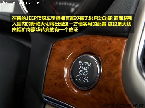 在轉(zhuǎn)向柱附近我們看到了無(wú)匙啟動(dòng)按鈕,目前在售的JEEP頂級(jí)車型指揮官都沒有此功能,也許是為了追求JEEP一貫的越野復(fù)古風(fēng)格,而現(xiàn)今的2011款大切將出現(xiàn)無(wú)匙啟動(dòng),確實(shí)是一個(gè)方便實(shí)用的配置。