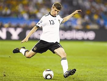 本屆杯賽打進(jìn)5球并有3次助攻的托馬斯·穆勒,榮膺南非世界杯最佳射手,他也獲得了本屆世界杯的最佳新秀獎(jiǎng)。德國(guó)神奇小子托馬斯·穆勒在德國(guó)與烏拉圭爭(zhēng)奪第三名的比賽中再入一球,不但幫助年輕的德國(guó)隊(duì)獲得世界杯季軍,也將他在本屆世界杯的進(jìn)球數(shù)提升至5球。在射手榜上,穆勒與比利亞、斯內(nèi)德和弗蘭并列頭名,但由于助攻次數(shù)多而摘得金靴獎(jiǎng)。托馬斯·穆勒是德國(guó)新生代球員的代表,在場(chǎng)上有著敏銳的嗅覺(jué)。本屆世界杯,穆勒總共有五腳射門(mén)打中門(mén)框范圍,全部破門(mén),100%的射正得分效率讓人膽寒。