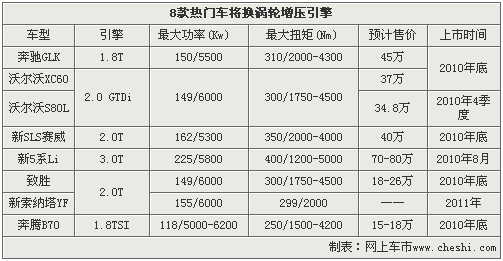 奔馳GLK和沃爾沃XC60作為原裝進(jìn)口車型,將于今年年底左右分別引入搭載1.8和2.0排量的渦輪增壓引擎的車型。而作為國(guó)產(chǎn)合資車型的新5系Li、沃爾沃S80L、新SLS賽威、致勝、新索納塔等車型,也將紛紛推出各自排量的渦輪增壓車型。除此之外,作為自主品牌代表的一汽奔騰B70,也將推出搭載大眾1.8TSI渦輪增壓燃油直噴引擎的車型。