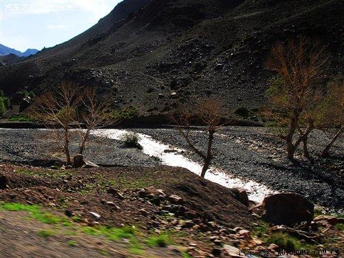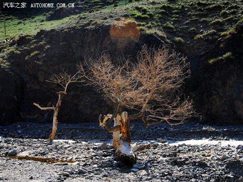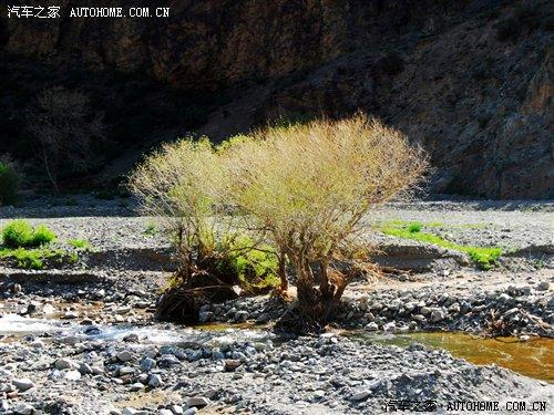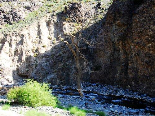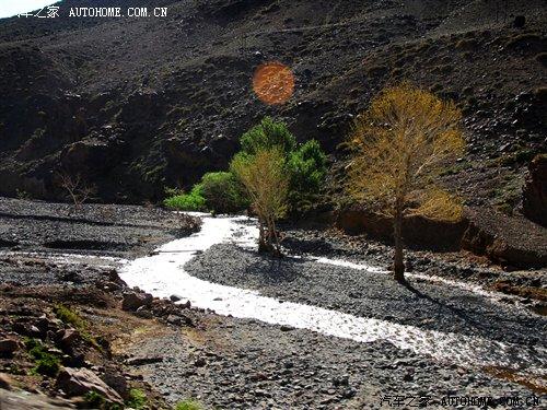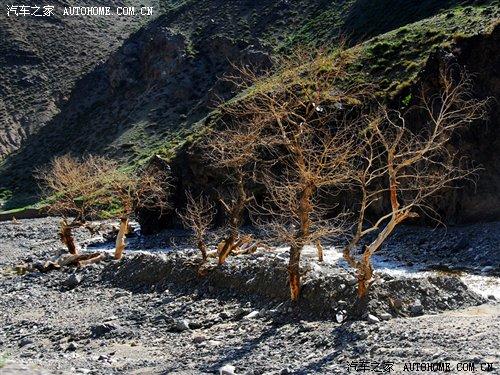 兩旁的山對(duì)我來說已經(jīng)不陌生了,所以我把目前轉(zhuǎn)移到了山路旁的小溪,當(dāng)然小溪也是沒有太多的吸引力的,反而是那些干枯的胡楊更令我著迷,沒有葉子而且站得筆直筆直的。據(jù)了解,這種胡楊常生長在沙漠中,它耐寒、耐旱、耐鹽堿、抗風(fēng)沙,有很強(qiáng)的生命力。這也很難怪在那么惡劣的環(huán)境下仍然屹立不倒。