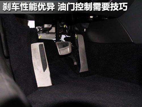 蘭博基尼GallardoLP 550-2剎車油門踏板采用鋁合金設(shè)計(jì),帶防滑墊非常的人性化,只是感覺踏板區(qū)域有效狹窄。蘭博基尼Gallardo LP 550-2的制動(dòng)性能非常出色,油門力度則有沉重。