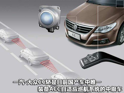 一汽-大眾CC轎跑車是目前唯一裝備ACC自適應(yīng)巡航的國(guó)產(chǎn)車型,提升了舒適性和安全性。除此之外,F(xiàn)ront Assist預(yù)碰撞安全系統(tǒng)、Lane Assist車道保持系統(tǒng)、Park Assist智能泊車輔助系統(tǒng)以及Rear Assist后視影像系統(tǒng)也均出現(xiàn)在一汽-大眾CC的高配車型上。