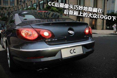 一汽-大眾CC轎跑車的后攝像頭巧妙地隱藏在后備廂上的大眾LOGO下,當擋位處于R擋狀態(tài)下,“大眾”標志自動抬起且露出攝像頭。設(shè)計既巧妙美觀,又可以防止意外損壞。