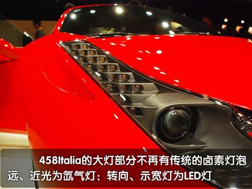 看過剛才為您介紹的那些有關(guān)于458Italia空氣動力學(xué)特性的設(shè)計,以及動力系統(tǒng)的特性。在外型上法拉利458Italia還有一些值得說道說道的東西。例如它的大燈系統(tǒng)已經(jīng)不再擁有任何的鹵素?zé)襞,而是全部使用了氙氣燈源組成的遠(yuǎn)近光;同時它的示寬燈、轉(zhuǎn)向燈也以LED的燈組來實現(xiàn)。而尾燈部分更是簡單到只有一個圓形燈組來實現(xiàn),其內(nèi)部包含了剎車燈、轉(zhuǎn)向燈的功能。