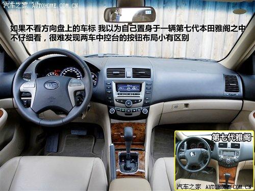 第七代雅閣的風(fēng)格同樣也延伸到F6的車內(nèi),無論色彩搭配、整體造型都非常雷同。盡管這已是幾年前的設(shè)計(jì),但現(xiàn)在看起來并不過時(shí),甚至依然有些時(shí)尚之意。如果不仔細(xì)看,很難發(fā)現(xiàn)兩車的中控臺(tái)按鈕布局還是小有區(qū)別的,模仿功底的確不錯(cuò)。
