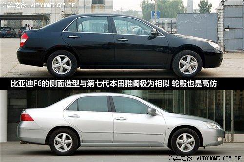 比亞迪F6的模仿并沒有僅僅停留在表面工作上,前雙橫臂后多連桿的懸掛形式也是從本田雅閣上借鑒過來的,后懸掛連桿的粗細(xì)程度都與原型車上的基本一樣,其實(shí)這也不是壞事,借鑒國(guó)外成熟的底盤設(shè)計(jì)也是加快進(jìn)步的途徑之一。