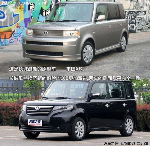 酷熊是模仿豐田著名的XB車型進行制造的,但也進行了一些風格上的更改,前臉是改動較大的地方,酷熊的大燈設計相對原型車來說更加激進一些,而兩車的側面和背面卻幾乎完全相同,酷熊的尾燈較豐田XB做出了非常小的修改,應該是為了迎合前臉的風格。
