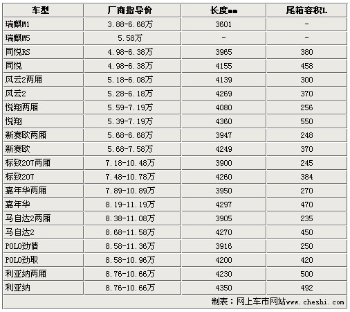 通過看以上數(shù)據(jù)我們可以發(fā)現(xiàn),并不是所有的車型三廂版都比兩廂版的尾部容積大。價格方面,也并非全部的三廂版都比兩廂貴,有些車型價格一直,還有些車型的兩廂版高配版本甚至超過了三廂版的售價。所以,在我們選擇經(jīng)濟型家用小型車的時候,需要考慮的方面還是很多的,實際操作一下會更容易讓我們做出決定。