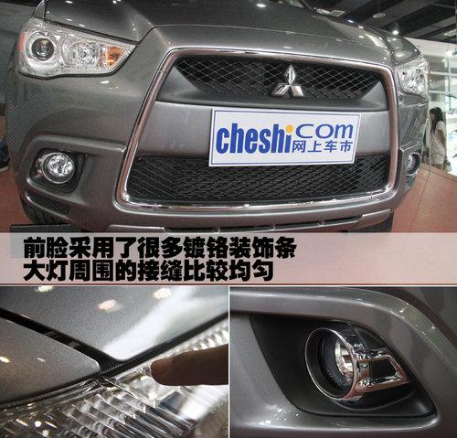 三菱ASX勁炫的前臉設(shè)計(jì)與歐藍(lán)德非常相似,采用了經(jīng)典的鯊魚式前傾大嘴造型,看上去非常具有殺傷力。我們通過實(shí)拍照片可以看的出來,三菱ASX勁炫的前進(jìn)氣格柵周圍和霧燈都采用鍍鉻裝飾條,而且鷹眼式前大燈周圍的接縫都比較均勻,做工水平比較到位。