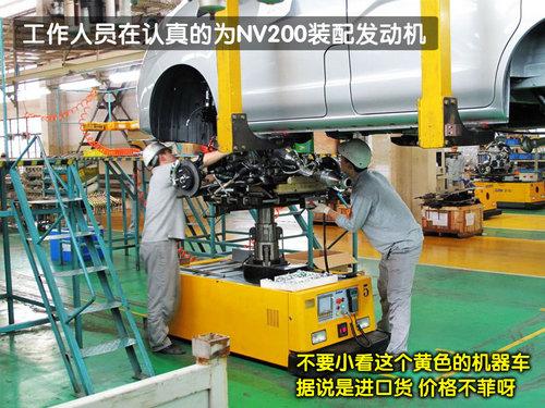 工作人員在認(rèn)真的為NV200裝配發(fā)動機,這個工作可得一絲不茍。協(xié)助工作人員工作的是一臺原裝進口的小車,據(jù)說這個小車的造價相當(dāng)高,不知一臺NV200可不可以換購?