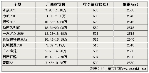 如今,在選購(gòu)家用經(jīng)濟(jì)型轎車(chē)的時(shí)候人們往往關(guān)注這樣幾個(gè)方面,外觀設(shè)計(jì)、空間、配置以及舒適度。當(dāng)然,價(jià)格是排在這些因素前面的。所謂空間,一般指駕乘空間、儲(chǔ)物空間和行李箱空間。很多車(chē)在滿足了駕乘空間后,不得不舍棄一定的行李箱空間。家用車(chē)的主要用途一般就是上下班代步、平時(shí)購(gòu)物以及外出游玩。駕乘空間自然是一個(gè)很重要的方面,但是,在駕乘空間相同的前提下,能夠提供更充足的行李箱空間,也是一款合格的家用轎車(chē)的衡量標(biāo)準(zhǔn)。