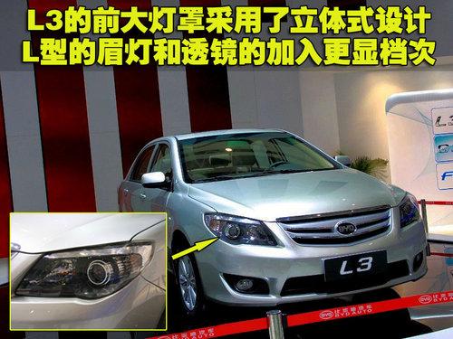比亞迪L3的車(chē)燈設(shè)計(jì)也頗有特點(diǎn),L型的鍍鉻燈眉一方面代表了L3的名字,也與中網(wǎng)的鍍鉻條相呼應(yīng)。立體式車(chē)燈罩也為前臉增添了一絲生氣,全系配備透鏡,夜間使用帶來(lái)更佳的照明聚光效果。