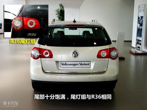 PASSAT旅行版與PASSAT高性能版R36在外觀上也非常相似。車頂?shù)幕【比較平緩,車身側(cè)面一條鍍鉻防擦條從前前門一直延伸至車尾,令車身更顯修長(zhǎng)。與國(guó)產(chǎn)邁騰一樣,PASSAT旅行款的軸距同為2709mm,沒有進(jìn)行加長(zhǎng)。而車頂?shù)男欣罴軇t是旅行版車型的必備配置。與車身同色的行李架在視覺上與整車完整度極高,而且對(duì)于愛好的旅行的車主而言,行李架的實(shí)際意義非常重要。