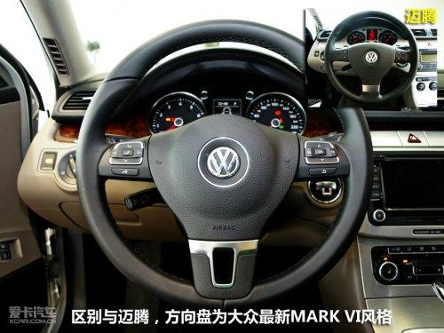 坐進PASSAT旅行版的車廂之內(nèi),雖然整體設計布局與國產(chǎn)邁騰并無二致,但明顯還是能感受到一些不同之處。最直觀的感受來自于方向盤,2011款邁騰的方向盤與老款一致,并未發(fā)生變化。而PASSAT旅行版則裝備了出現(xiàn)在國產(chǎn)高爾夫6上的大眾MARK VI風格方向盤。這一變化給車廂增添了一些新鮮的氣息,眾多的多功能按鈕非常好用,換擋撥片則令駕駛樂趣大幅增加。