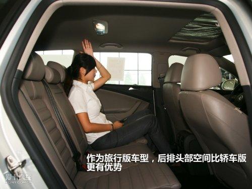 由于車頂曲線在到達(dá)C柱時(shí)不需要快速的下滑,旅行車后排頭部空間往往較轎車版本更有優(yōu)勢(shì)。從圖中可以看出模特MM坐在后排,其頭部空間可以稱之為奢侈。而PASSAT旅行版與國(guó)產(chǎn)邁騰一樣,都未對(duì)軸距進(jìn)行加長(zhǎng),所以腿部空間并無(wú)太突出表現(xiàn),但對(duì)于模特MM而言已完全足夠。