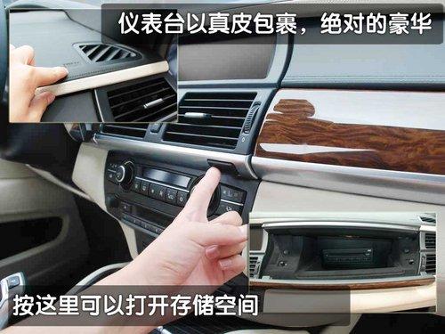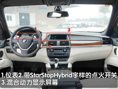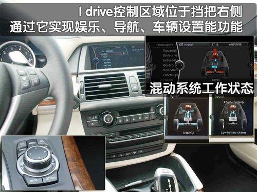 在內(nèi)飾部分寶馬X6混合動力版車型也有著細(xì)微的不同,儀表臺的整體感覺與寶馬家族的其它車型造型統(tǒng)一,略向駕駛員一側(cè)偏轉(zhuǎn)的儀表臺照顧到了駕駛員在駕車當(dāng)中的操作便捷性。儀表臺整體材料為真皮材質(zhì),而鋁金屬裝飾條顯得更加動感十足,但第一感覺始終讓人誤以為是寶馬X5的內(nèi)飾。