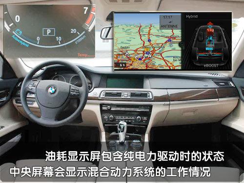 在儀表臺(tái)部分混合動(dòng)力7系轎車的油耗顯示區(qū)域與普通車型明顯不同,它的指針從“Active HyBrid ”開始,指針指向這個(gè)部分的時(shí)候代表并不會(huì)消耗燃油。而混合動(dòng)力7系轎車的電機(jī)部分并不能單獨(dú)支撐車子行駛很長(zhǎng)的時(shí)間,它更多的作用是為了輔助引擎,以及在車輛制動(dòng)和滑行過程中收集制動(dòng)能量轉(zhuǎn)化為電能儲(chǔ)存在電池中。