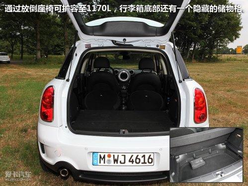 既然廠方說Countryman是最實用的MINI,那么行李箱空間肯定會成為用戶仔細考量的一處。輕按行李箱蓋上的MINI徽章,標準狀態(tài)下行李箱空間有350L,通過放倒座椅可擴容至1170L,在行李箱底部還有一個隱藏的儲物格。怎么樣,夠用了吧!