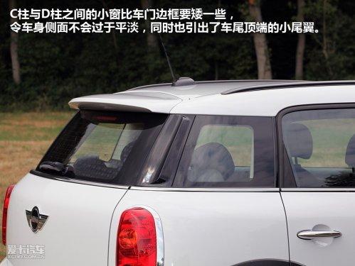 MINICountryman的造型比例比較協調,車頭部分所占的比重剛剛好,前風擋的角度比較大,在加上直來直去的車頂線條,Countryman看上去依舊很干練,當我們看慣了路上跑的MINI Cooper之后,也不會覺得Countryman有任何臃腫的感覺。C柱與D柱之間的小窗比車門邊框要矮一些,令車身側面不會過于平淡,同時也引出了車尾頂端的小尾翼。環(huán)繞車身一周的黑色塑料裝飾無疑顯露出Countryman的跨界一面。