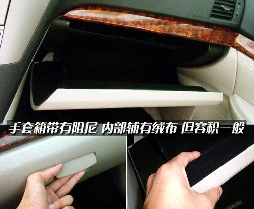 新傲虎的手套箱容積并沒有想象的大,開啟的角度也比較小,內(nèi)部空間比較狹窄,但能滿足日常使用。上方為軟性材料包裹,手感一般,拉手開啟阻尼適中。