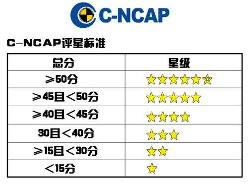 C-NCAP是將在市場上購買的新車型按照比我國現(xiàn)有強制性標準更嚴格和更全面的要求進行碰撞安全性能測試,評價結(jié)果按星級劃分并公開發(fā)布,旨在給予消費者系統(tǒng)、客觀的車輛信息,促進企業(yè)按照更高的安全標準開發(fā)和生產(chǎn),從而有效減少道路交通事故的傷害及損失。C-NCAP的評分標準主要分為四個部分,正面100%重疊剛性壁障碰撞試驗、正面40%重疊可變形壁障碰撞試驗、可變形移動壁障側(cè)面碰撞試驗以及車輛自身所配備的氣囊的安全配置的附加得分。四項分數(shù)相加后,得出的總分,再根據(jù)上面表格中的評分標準評定安全級別。分數(shù)和星級越高的車型,在撞擊時所造成的傷害越小。