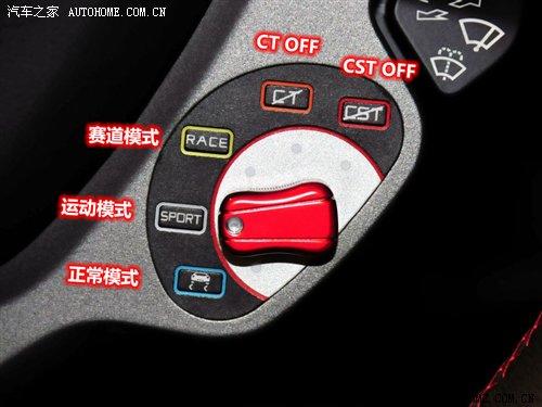 而通過(guò)方向盤(pán)上的電子控制系統(tǒng)對(duì)車(chē)輛進(jìn)行調(diào)節(jié),可以分為普通模式、RACE、SPORT、CT OFF、CST OFF幾個(gè)選項(xiàng)調(diào)節(jié),駕駛者可以根據(jù)不同的路況和駕駛環(huán)境進(jìn)行調(diào)節(jié),在低附著力情況下可以選擇普通模式,在中附著力的情況下可以調(diào)節(jié)為SPORT,而在賽道或高附著力的情況就可以選擇RACE、CT OFF、CST OFF選項(xiàng)。