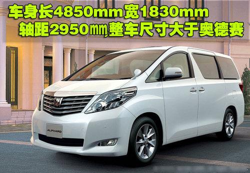 目前日本本土銷售的豐田Alphard是其第二代車型,分為兩驅(qū)和四驅(qū)兩個版本,兩驅(qū)車型的車身長4850mm 。寬1830 mm ,高1890mm,四驅(qū)車型的車身長為4850 mm ,車寬1830 mm ,高1905mm,而軸距均為2950mm。