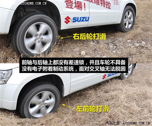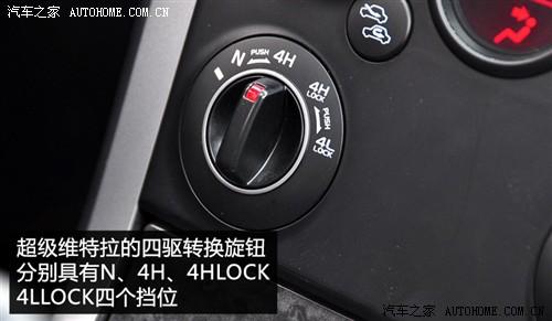 超級維特拉帶有中央差速器,正常行駛時為全時四驅(qū)模式,并可通過位于中控臺上的旋鈕來鎖止中央差速器,不過,該車并沒有左右輪間限滑裝置,面對交叉軸項目時還是無能為力,但是依靠發(fā)動機強勁的動力行駛在普通的非鋪裝路面上還是問題不大的。