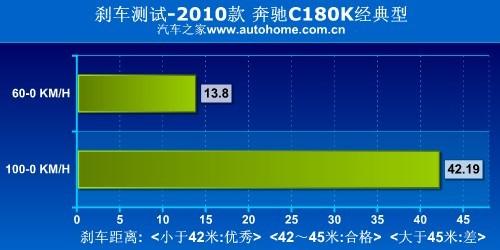 在我們對C180K的測試中,最終百公里加速時間為10.3秒,很遺憾沒有進入10秒以內(nèi),不過這個成績依然領(lǐng)先眾多2.4L自然吸氣發(fā)動機車型。剎車成績?yōu)?2.19米,按說算是個不錯的成績,但是相比奔馳家族的其他兄弟,這個成績就顯得有待提高了。油耗的表現(xiàn)比較出色,8.74升/百公里的表現(xiàn)對于一款加速在10秒左右的中型車來說還是很優(yōu)秀的。