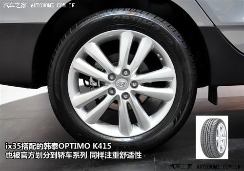 韓泰OPTIMO K415也被官方劃分得到轎車輪胎系列,看來現(xiàn)代ix35的確不適合在野地里行駛,從選用的輪胎上就能看出,該車更多突出的的是舒適性。采用米其林輪胎的車型暫時(shí)還沒有見到,不知道是采用的哪款型號(hào)。另外,ix35的備胎也為全尺寸鋁合金輪轂的,沒有縮水。