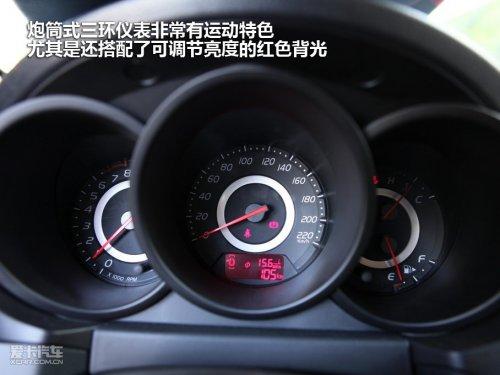黑色真皮打孔方向盤絕對不是樣子貨,手感還算不錯,銀色材質(zhì)裝飾的部分還配備了音響系統(tǒng)的控制鍵,按鍵阻尼均勻不乏質(zhì)感。炮筒式三環(huán)儀表非常有運動特色,尤其是搭配了可調(diào)節(jié)亮度的紅色背光。下方的液晶屏有瞬時油耗和平均油耗顯示等功能,雖然尺寸小了一些,但是實用性很到位。