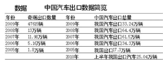 對(duì)目前的奇瑞來(lái)說(shuō),海外市場(chǎng)銷(xiāo)量能否取得大突破,對(duì)其能否順利完成全年70萬(wàn)輛產(chǎn)銷(xiāo)目標(biāo)關(guān)系重大。